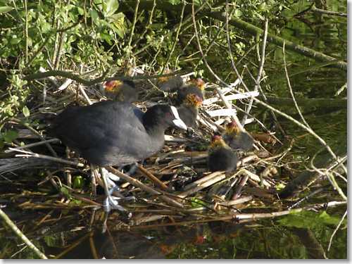 foto: De wijde "Dit is de laatste in de serie meerkoeten. Het andere nest is nu leeg, maar wordt af en toe toch door de drie overgebleven jongen bezocht." (P.W.)