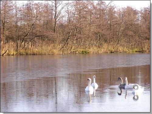 foto: Ariejan Groenewegen Zwanen als ijsbreker. Dammerkade in Ankeveen . |